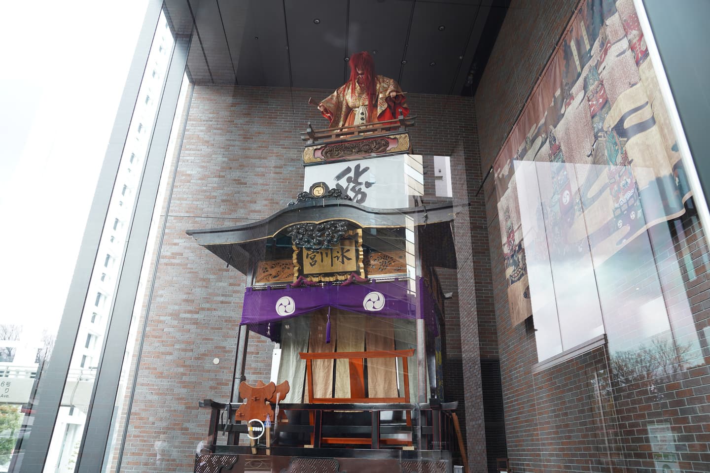 神様の依り代・乗り物とも考えられ、様々な形を持つ山車ですが、中でも赤坂が所有する山車の多くを占める「江戸型山車」は、徳川将軍が上覧する際に江戸城の門を通過するため、最上部の人形が上下に動くカラクリを装備しているのが特徴です。